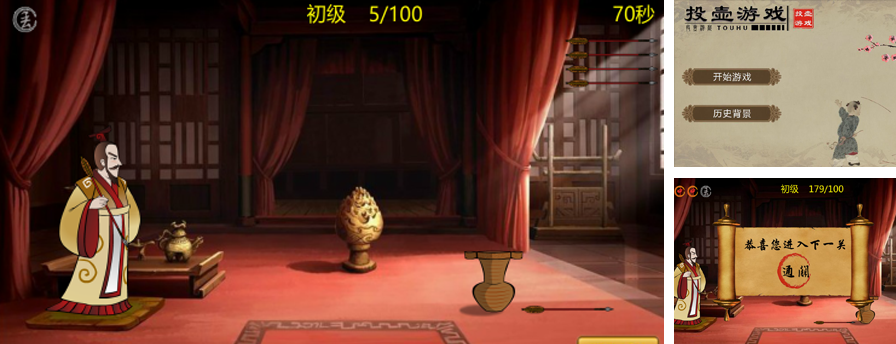 項(xiàng)目名稱:安康博物館 完工時(shí)間:2014年 展示內(nèi)容:復(fù)古投壺游戲 交互形式:觸摸交互