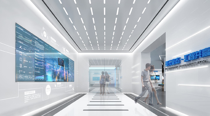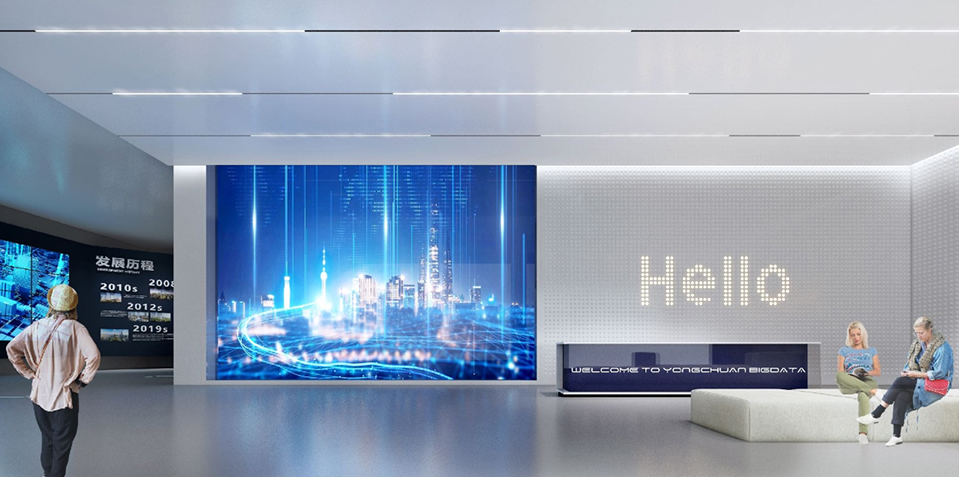 永川大數(shù)據(jù)展示中心位于重慶市永川區(qū)大數(shù)據(jù)產(chǎn)業(yè)園,展館采用現(xiàn)代簡(jiǎn)約風(fēng),將像素和數(shù)據(jù)流的概念融入空間。展品與傳統(tǒng)形式區(qū)分開(kāi),利用多種媒體手法,通過(guò)互動(dòng)體驗(yàn)吸引參觀者的注意力。展項(xiàng)內(nèi)容可隨大數(shù)據(jù)的發(fā)展與變化持續(xù)更新。