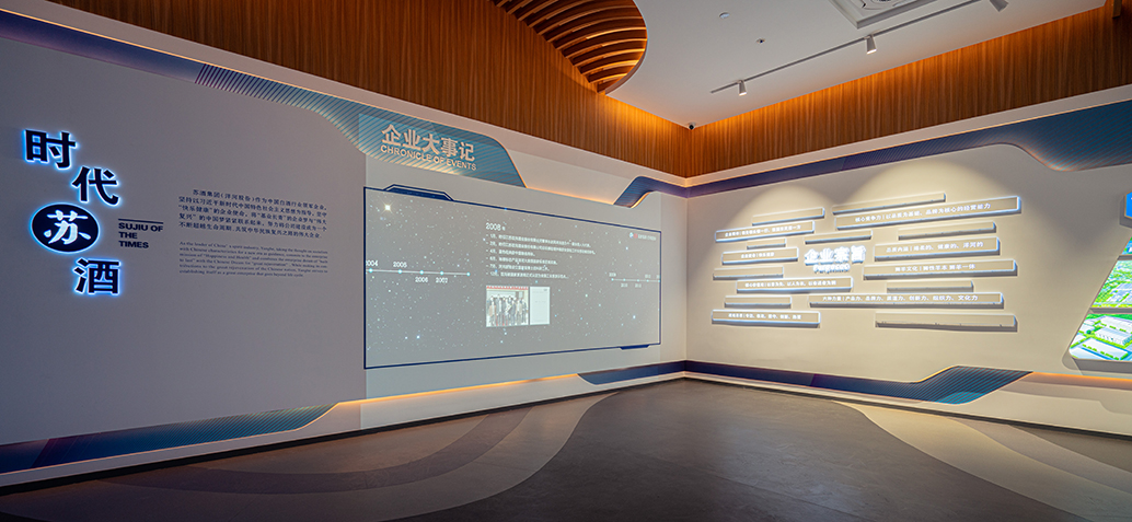 洋河股份企業展覽館位于江蘇省宿遷市,由序廳中國酒都千年酒脈綿柔鼻祖時代華章尾廳六個展廳組成,深入淺出地介紹了酒文化與洋河企業的發展歷程。