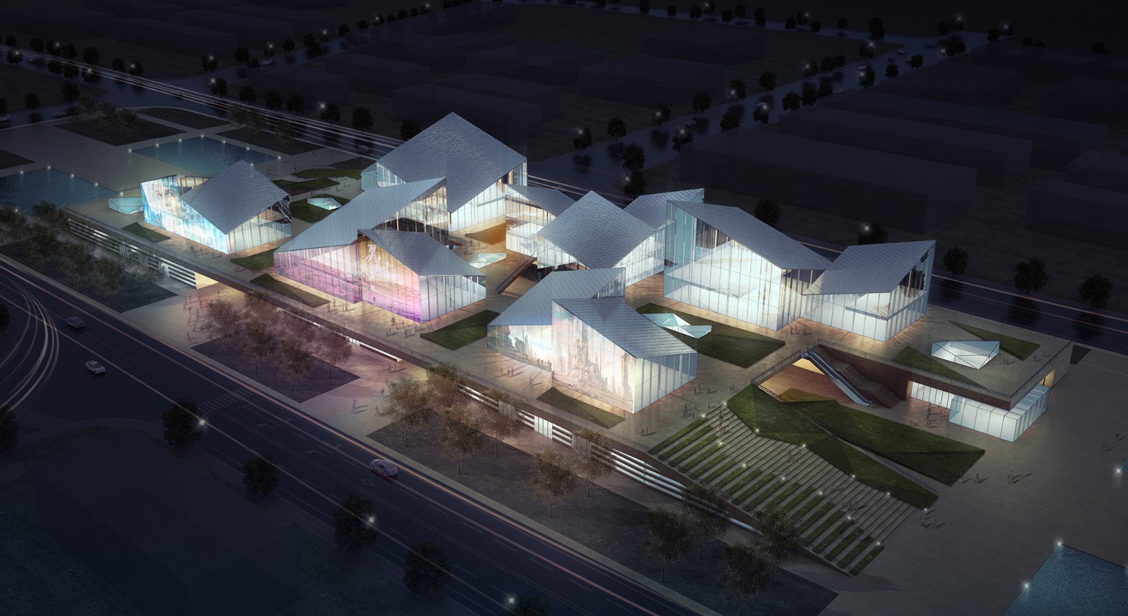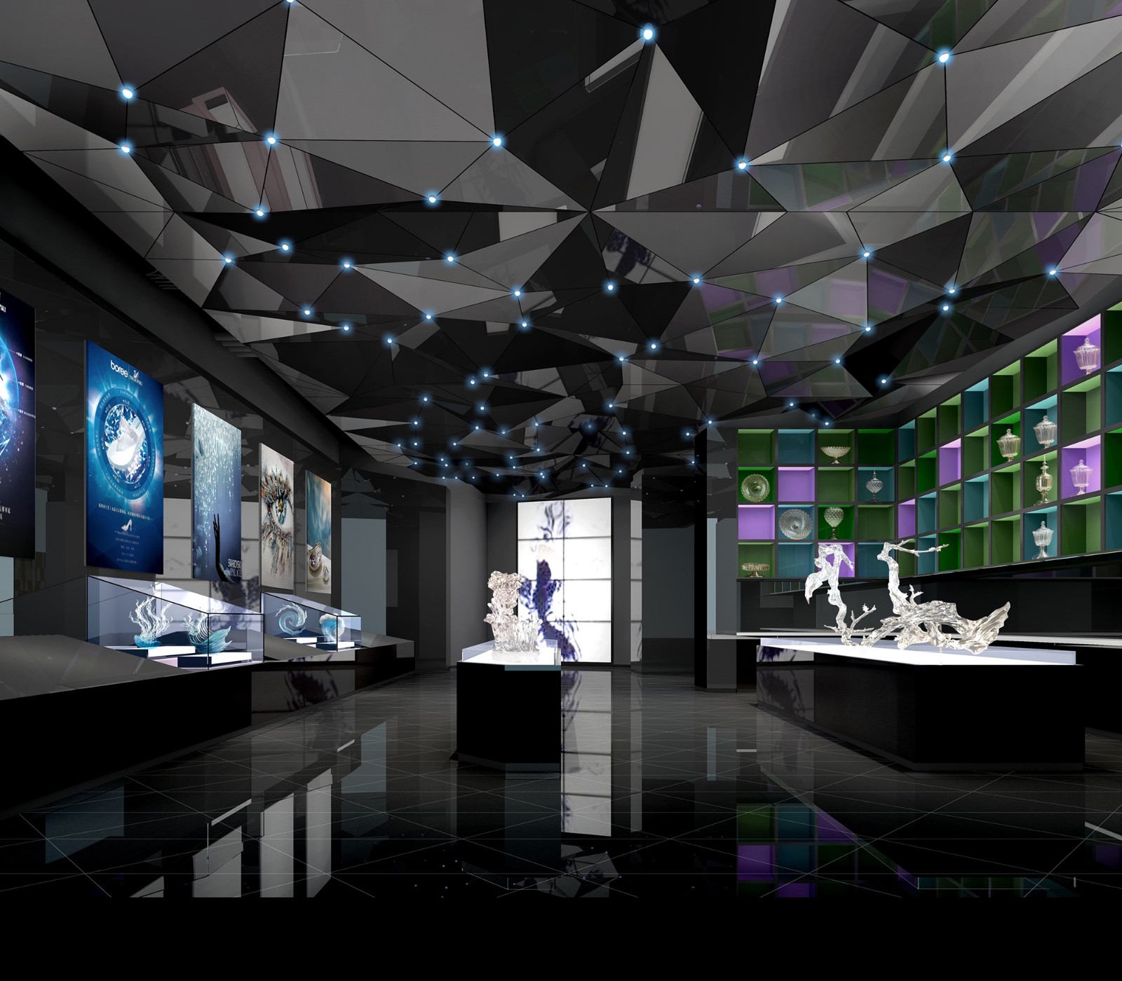 蘇州金螳螂文化發展股份有限公司設計團隊以“晶艷全球、綻放異彩”為總體設計理念,精心打造浦江水晶小鎮入口區域的核心景觀,根據不同區域的功能業態,規劃設置了多種空間尺度,形成獨具水晶神韻與起承轉合的空間氛圍,依據水晶的形、色、音等特性,采用多種高科技展示手段,讓水晶之美和科技之光渾然交融,打造既時尚又好玩的小鎮會客廳,讓游客獲得絕佳的體驗和美好的參觀記憶。