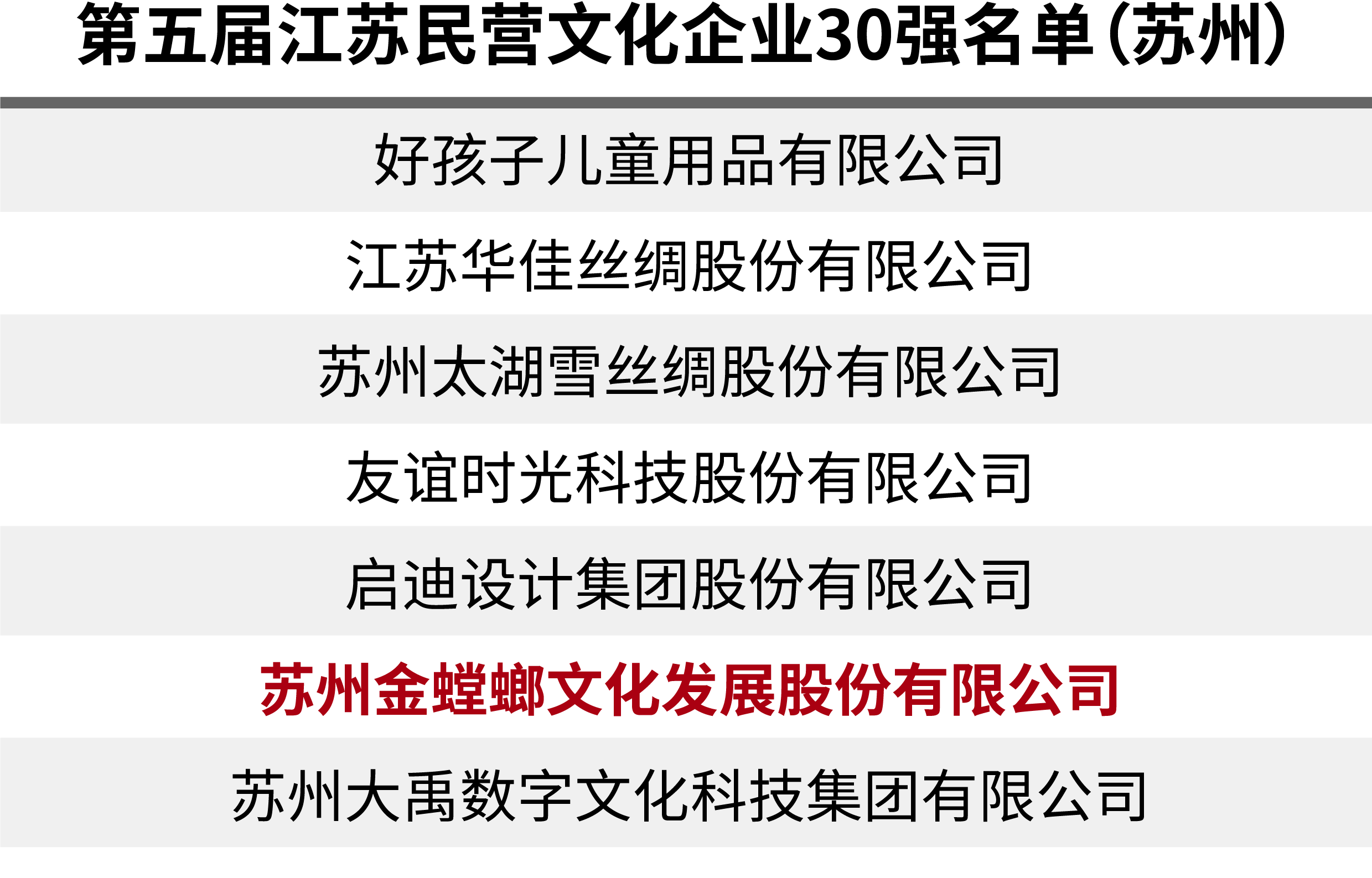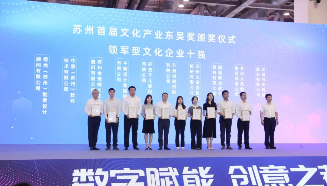 近日 第五屆江蘇民營文化企業(yè)30強名單公示 蘇州共7家成功入圍 金螳螂文化再度榮登榜單 第五屆江蘇民營文化企業(yè)30強認(rèn)定是由省委宣傳部、省文化和旅游廳、省市場監(jiān)督管理局、省廣播電視局、省統(tǒng)計局、省工商聯(lián)組織開展的年度重點工作。 旨在鼓勵、支持、引導(dǎo)民營文化企業(yè)健康發(fā)展,加快培育具有自主知識產(chǎn)權(quán)、核心競爭力的民營骨干文化企業(yè)和企業(yè)集團,為全省文化產(chǎn)業(yè)高質(zhì)量發(fā)展提供有力支撐。 讓設(shè)計更有文化,讓空間更有故事。金螳螂文化多年來致力于文博展示、文旅融合,探索創(chuàng)新創(chuàng)意的更優(yōu)表達(dá)。 繼2021年獲得第四屆“江蘇民營文化企業(yè)30強”后,金螳螂文化再度入選,將進一步激勵企業(yè)不斷提高核心競爭力、提升文化價值,踐行社會責(zé)任,引領(lǐng)行業(yè)創(chuàng)新發(fā)展,為文化產(chǎn)業(yè)的高質(zhì)量發(fā)展貢獻力量。 △ 第十二屆蘇州文博會,金螳螂文化獲得蘇州首屆文化產(chǎn)業(yè)“東吳獎”領(lǐng)軍型文化企業(yè)十強