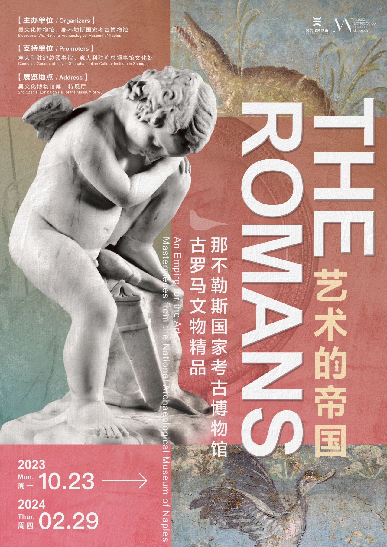 穿越千年,跨越山海 古羅馬時(shí)期的遺珍向我們揮手 璀璨的古羅馬文明向我們走來(lái) 吳文化博物館年度跨境大展 “藝術(shù)的帝國(guó)——那不勒斯國(guó)家考古博物館 古羅馬文物精品” 正式開(kāi)幕 10月23日,“藝術(shù)的帝國(guó)——那不勒斯國(guó)家考古博物館古羅馬文物精品”特展開(kāi)幕式在吳文化博物館舉行。這是繼2022年成功舉辦“伊特魯里亞人——古代意大利的貴族”展覽后,吳文化博物館與那不勒斯國(guó)家考古博物館的再次合作。 本次展覽共展出來(lái)自古羅馬文明的代表性文物98件/套,包括法爾內(nèi)塞收藏的藏品和出土自赫庫(kù)蘭尼姆、龐貝古城的珍貴文物,囊括雕像、銀器、玻璃器、濕壁畫(huà)、馬賽克等多種藝術(shù)形式。 本次特展分為四個(gè)單元,從古羅馬藝術(shù)、人物肖像、色彩運(yùn)用、技術(shù)等方面展開(kāi)闡釋?zhuān)瑤ьI(lǐng)大家遍覽古羅馬文明的多重面貌,并重現(xiàn)古羅馬文明的輝煌與繁榮。 羅馬古跡遠(yuǎn)渡重洋來(lái)到我們眼前,為我們展現(xiàn)了古羅馬文明對(duì)美的理解和對(duì)美的運(yùn)用,讓兩大文明在兩千年后的今天在展廳再一次相遇。 金螳螂文化項(xiàng)目團(tuán)隊(duì)將古羅馬歷史的恢弘感融入展陳設(shè)計(jì),巧妙運(yùn)用光與影,力圖在有限的展覽空間中呈現(xiàn)無(wú)限延伸的文化之美。 展覽時(shí)間:2023.10.23-2024.2.29 展覽地點(diǎn):吳文化博物館第二特展廳