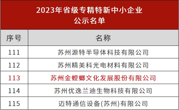 日前,江蘇省工信廳公示了 2023年省級專精特新中小企業名單 金螳螂文化位列其中! 入選“專精特新”企業名單,是行業與市場對于企業創新實力、技術能力、產品質量及未來前景的再度認可,同時也為金螳螂文化的企業發展注入了新動力。 讓設計更有文化,讓空間更有故事。蘇州金螳螂文化發展股份有限公司成立于2001年,是國家高新技術企業,在北京、上海、南京、西安、深圳等地均設有分支機構。 金螳螂文化為博物館、科技館、美術館、規劃館、主題館等客戶提供定制化的設計、施工、布展一體化服務,打造了一批全國各省市重點文化項目,并先后獲得了全國博物館十大精品獎、魯班獎、中國建筑工程裝飾獎、華鼎獎、IDA設計大獎等一系列行業殊榮。 創新引領,專業深耕。此次獲得“2023年省級專精特新中小企業”認定,是對金螳螂文化多年行業實踐探索的肯定,鼓勵我們持續創新、穩步進階,實現企業高質量發展。